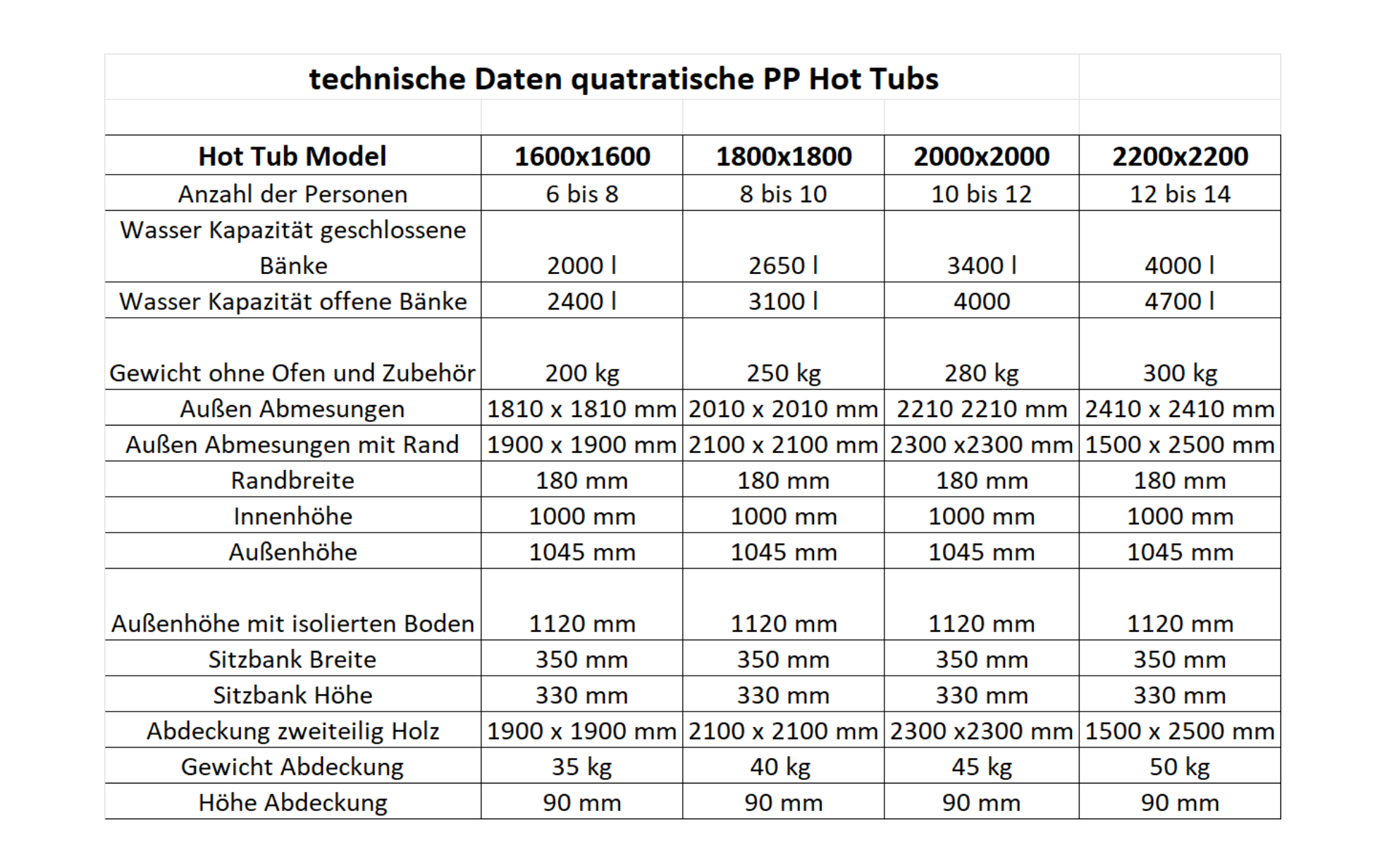 Hot Tub Polypropylen 1600x1600 mm externer Ofen
