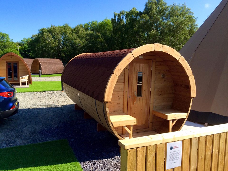 Saunafass 4,8 m lang und einem Durchmesser von Ø 1,97 od. 2,27 m